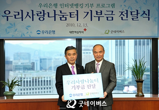 우리 단체는 지난 12월 14일 우리은행(은행장 이종휘)으로부터 '우리사랑나눔터' 기부금을 전달받았습니다.