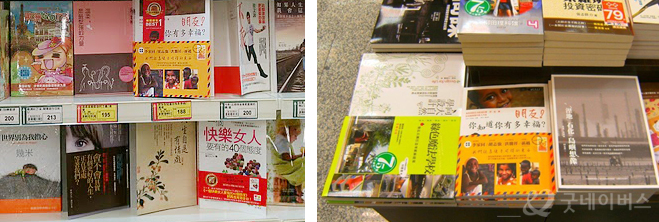 <대만 주요 서점에 ‘친구야, 넌 어떤 행복을 꿈꾸니?’ 도서가 전시되어 있는 모습.>