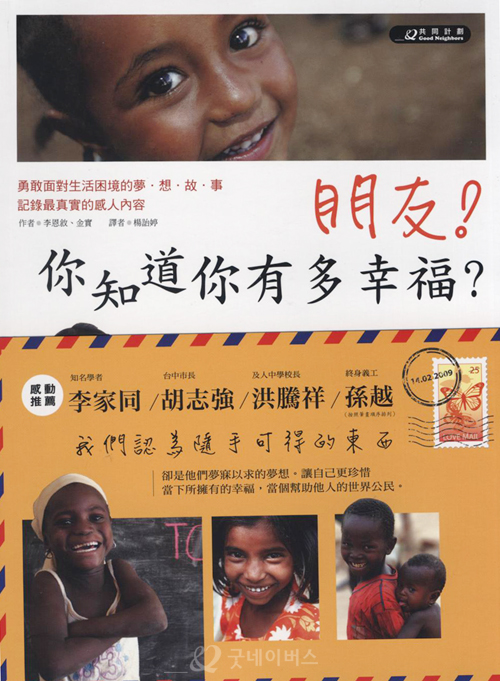 지난 2009년 12월 한국어판으로 먼저 출간된 ‘친구야, 넌 어떤 행복을 꿈꾸니?’는 열악한 환경가운데서도 꿈을 잃지 않고 살아가는 굿네이버스 해외지부 아동들의 사례를 엮어 펴낸 것으로 2010년 아동?청소년 부문 우수도서로 인정받아 문화체육관광부 교양도서로 선정되기도 했습니다.