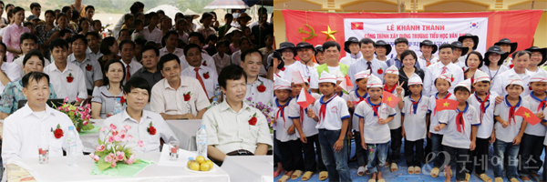 특히 이 학교의 완공식은 이번 자원봉사 기간 중 후원사인 LS엠트론 임직원들이 참석한 가운데 진행되어 의미를 더하고 있습니다. 완공식에는 굿네이버스 이보용 베트남 지부장, LS엠트론 지원부문장 박경일 상무와 임직원 봉사단, 지역주민 등 2백여 명이 참석하였습니다.