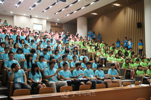 우리 단체는 지난 8월 3일부터 5일까지 인천 송도 연세대 국제캠퍼스에서 전국 120개 고등학교 학생회장·부회장 240여명이 참여한 ‘청소년 글로벌 리더십 캠프’를 진행하였습니다. 올해로 두 번째를 맞이하는 이번 캠프는 오는 11월 부산에서 열리는 개발원조 관련 최대·최고위급 국제회의인 ‘세계개발원조총회’의 청소년 모의회의 형태로, 청소년 리더십 고양 차원에서 마련되었습니다.