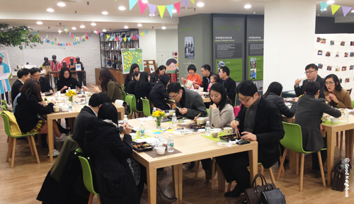 우리 단체는 지난 3월 26일 굿네이버스 지하 라운지에서 좋은이웃 굿멤버스데이를 진행했습니다. 올해 처음으로 실시한 굿멤버스데이는 매월 마지막 주 목요일에 진행되는 소규모 회원 참여행사입니다. 이번 굿멤버스데이는 ‘소셜 다이닝*’을 접목시킨 ‘굿 다이닝’ 형태로 진행되었으며 신규 및 기존 회원 30명이 참여했습니다.