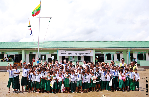 다음카카오(공동대표 최세훈, 이석우) 는 지난 6월 10일 우리 단체와 함께 미얀마 다곤세이칸(Dagon seikkan) 지역에서 제10호 지구촌 희망학교 완공식을 진행했습니다. 이번 행사에는 다음카카오 윤호영 부사장을 비롯한 임직원과 우리 단체 미얀마 지부(지부장 최민호) 및 미얀마 지역 주민 150명, 다곤세이칸 지역 아동 400명 등이 참석하였습니다.