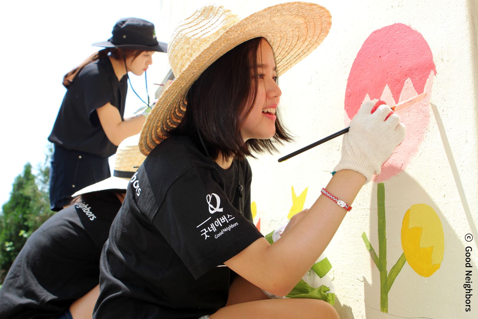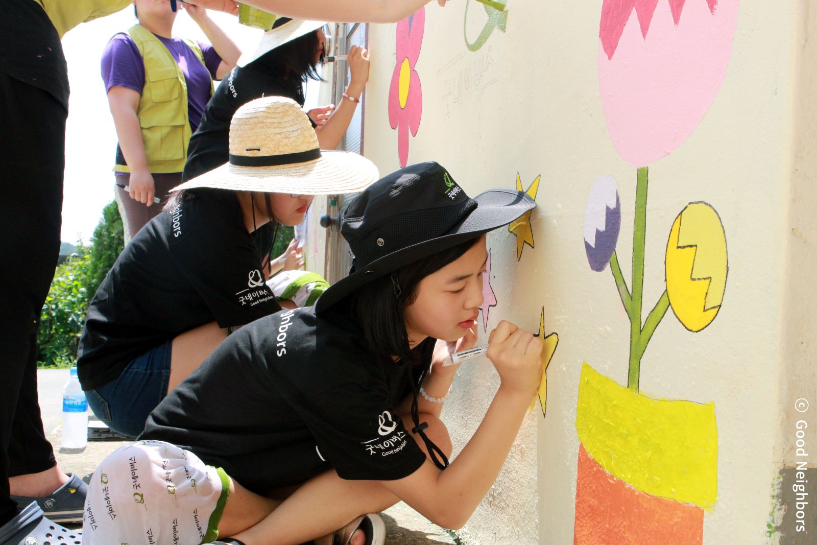 평소 그림은 물론 봉사 활동에 많은 관심을 가졌던 김향기, 노정의는 "방학을 맞이해 의미있는 일에 함께 참여할 수 있어 즐거웠다. 부족한 실력이지만 지역주민 분들이 벽화를 보고 기뻐하셨으면 좋겠다."라고 활동소감을 전했습니다.