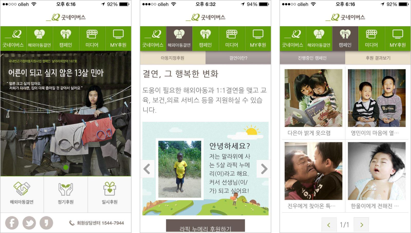 이번에 출시된 앱을 통해 굿네이버스의 사업소개와 현장소식은 물론, 도움이 필요한 국내외 빈곤아동의 소식을 빠르게 접하고 도움을 줄 수 있습니다.