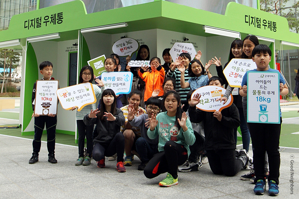 각 부스에서는 영상을 통해 도움이 필요한 지구촌 아동의 상황을 인지하고, 무거운 물통 나르기, 10kg 벽돌 지게 매기, 장애물 타파하기 등의 다양한 체험을 하며 나눔의 필요성에 공감할 수 있습니다. 부스 체험 후에는 체험전 중앙에 위치한 높이 9m의 대형 디지털 우체통에서 지구촌 아동에게 영상편지를 보내 희망을 전할 수 있습니다.