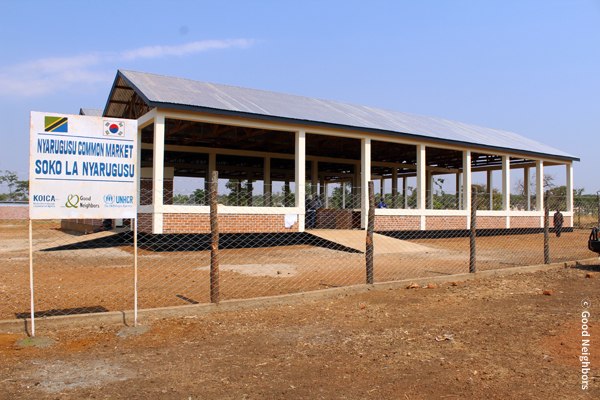 우리 단체 탄자니아 지부(지부장 허남운)는 이러한 상황을 개선하기 위해 한국국제협력단(KOICA)의 지원으로 유엔난민기구(UNHCR)-탄자니아 정부와 3자간 MOU를 체결하여 난민자립지원사업에 착수하였습니다. 그 일환으로 지난 9월 탄자니아 정부가 난민과 지역주민간의 왕래를 위해 4Km 이내에 지정한 완충구간(buffer zone)에 시장을 구축했습니다.