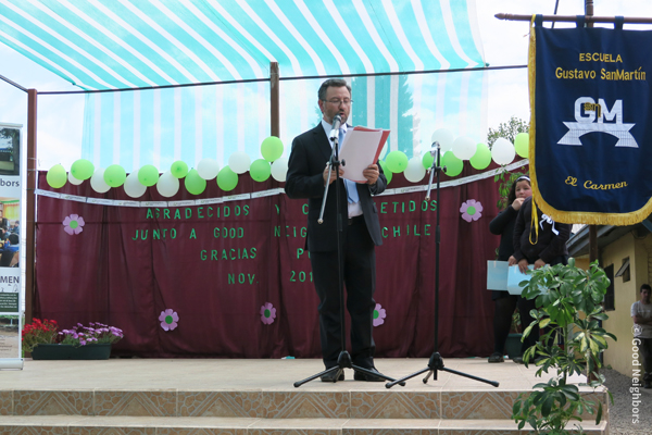 이날 엘 카르멘 시장과 Gustavo San Martin 교장은 축사를 통해 굿네이버스와 포스코건설의 칠레 산간 벽지 학교에 대한 관심과 사회공헌에 깊은 감명을 받았다며 감사의 인사를 전했습니다.
