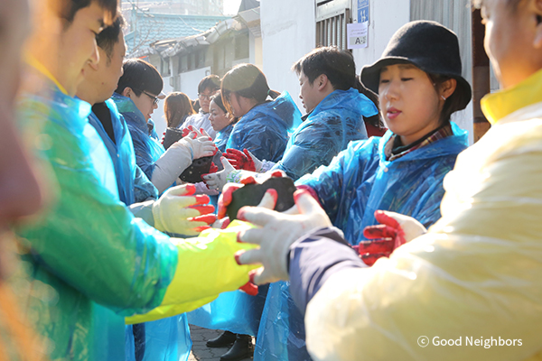 연탄배달이 어려운 높은 언덕에 위치한 가정에 연탄을 날랐으며, 한 장에 약 5kg에 달하는 무거운 연탄을 한 장 한 장 나르는 힘든 상황에도, 노래를 부르고 서로 응원하면서 훈훈하고 따뜻한 봉사 현장을 만들었습니다.
