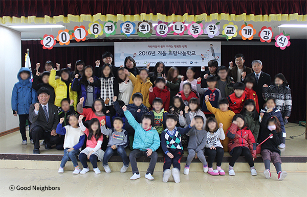 우리 단체는 BMW 코리아 미래재단(이사장 김효준)과 함께 1월 4일부터 15일까지 어린이들의 꿈이 자라는 행복한 방학 ‘2016년 겨울 희망나눔학교’를 진행합니다.