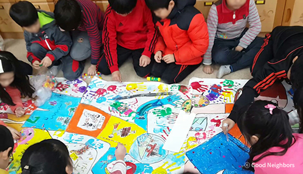 더불어 아동의 꿈을 응원하기 위해 지역사회 자원과 재능기부를 활용해 미래의 직업을 체험할 수 있도록 특기활동을 지원하고, 아동이 꿈꾸는 미래를 작품으로 표현하는 팀 프로젝트 활동도 진행합니다.