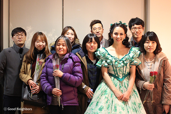 공연 관람 후 초청받은 기부자들은 대기실을 방문해 김지우씨를 만나 인사를 나누고 기념 사진을 찍는 시간을 가졌습니다. 또한 기부자들은 얼마 전 첫돌을 맞은 김지우씨의 딸 루아나리를 위한 깜짝 돌잔치를 준비해 함께 축하하는 시간을 보냈습니다.