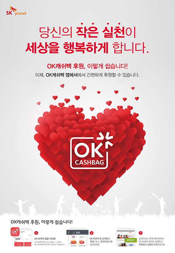 생활 속 간단한 실천으로 나눔의 손길을 건넬 수 있는 OK캐쉬백 후원에 많은 참여 바랍니다.