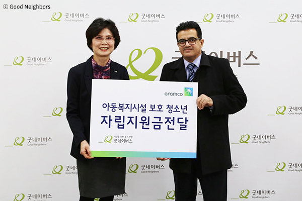 이날 협약식에는 김인희 굿네이버스 부회장, 오스만 알 감디 아람코 아시아 코리아 유한회사 대표이사가 참석한 가운데 진행됐습니다. 이번 협약을 통해 우리 단체는 아람코와 함께 굿네이버스 협력 아동복지시설 30여 곳 고등학생의 자기계발을 응원하기 위해 청소년 자립지원사업을 추진할 계획입니다.
