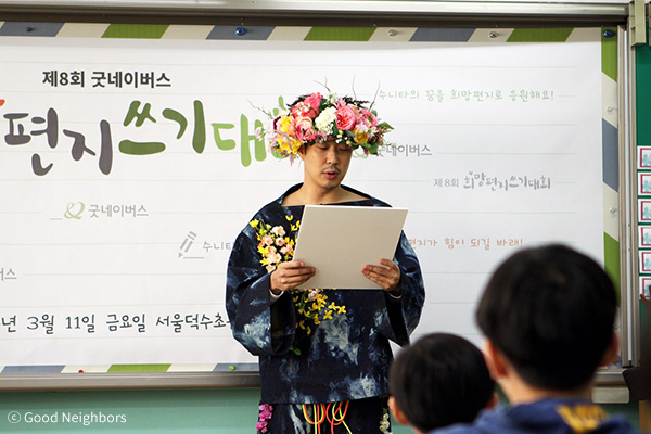 우리 단체는 11일(금) 서울덕수초등학교(학교장 한경옥)에서 방송인 하하와 함께 ‘제8회 굿네이버스 희망편지쓰기대회’ 발대식을 진행했습니다.