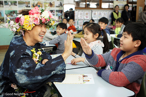 하하는 ‘제8회 굿네이버스 희망편지쓰기대회’의 주인공인 네팔의 12살 소녀 수니타의 사연이 담긴 영상을 보던 서울덕수초등학교 3학년 1반 교실에 깜짝 등장했습니다. 이후, 손수 써 온 희망편지를 아이들에게 읽어주며, 어려운 환경에 놓여 있는 수니타에게 함께 힘이 되어 주기를 권유했습니다. 또한 아이들 한 명, 한 명에게 직접 희망편지지를 나누어 주면서 자신과 함께 나눔에 동참하도록 아이들과 약속했으며, 수니타에게 응원을 보내는 힘찬 파이팅으로 발대식을 마무리했습니다.