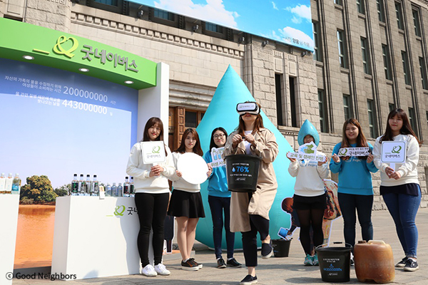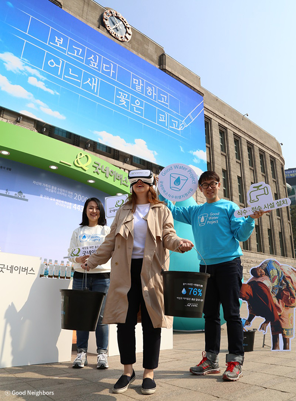 우리 단체는 3월 22일 ‘세계 물의 날’을 맞아 지난 21, 22일 양일간 서울시청 앞 광장에서 아프리카 니제르의 물 부족 현실을 가상현실(VR)로 체험할 수 있는 ‘굿워터 프로젝트’ 캠페인을 진행했습니다.