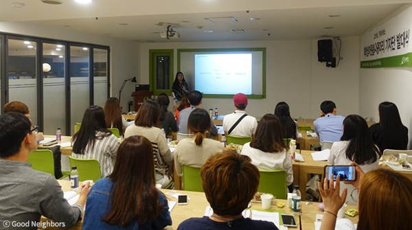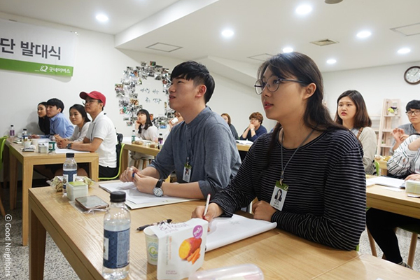 이날 발대식에는 2016 굿네이버스 대학생자원봉사동아리원 3,060명 중 기자단으로 선발된 20명의 학생들이 참여해 기자단 활동계획에 대해 공유하는 시간을 가졌습니다. 기자단 학생들은 기사작성과 홍보활동에 관한 교육을 받고 팀별 활동계획에 대해 의견을 나누기도 했습니다.