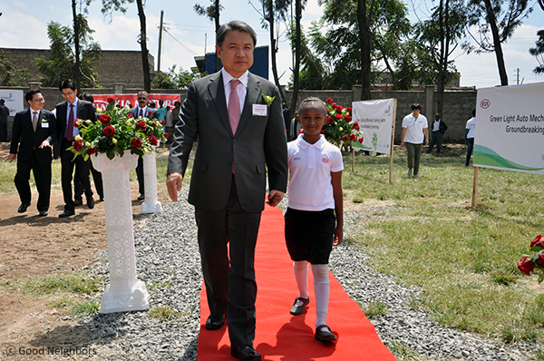 이날 기공식에는 정진행 현대·기아자동차 사장을 포함한 기아자동차 임직원들과 케냐 나이로비 교육부 장관, 단도라 지역 국회의원 등을 포함한 지역 위원 100여 명이 참석해 착공을 축하하는 시간을 가졌습니다.