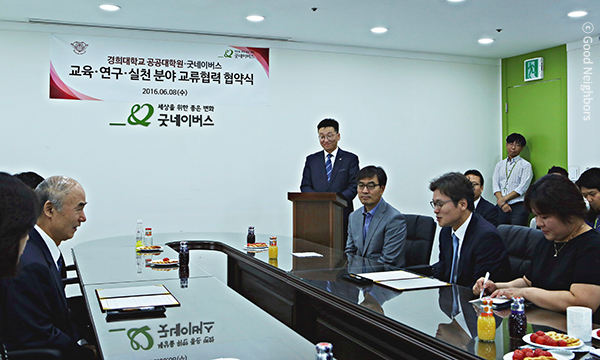 이번 협약을 통해 우리 단체와 경희대학교 공공대학원은 교육·연구·실천 분야에서 교류협력을 활성화해 국제개발협력 우수인력을 양성하고, 지구촌 빈곤문제 해결에 상호 협력할 계획입니다.