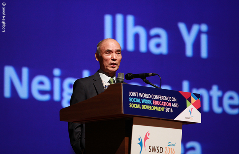 이번 대회에서 이일하 굿네이버스 회장은 ‘인간의 가치증진을 통한 더 나은 세상 만들기: NPO의 도전과 역할’이라는 주제로 대회 기조강연을 진행했습니다. 이일하 굿네이버스 회장은 “사회복지사인 우리들은 인간 존엄성을 존중하고 사회정의를 실천하며 부단히 혁신을 만들어야 한다”며 “일방적인 원조보다는 지역중심, 시민참여 중심으로 사업을 진행해 수혜자가 사업의 주체가 될 수 있도록 만들어야 한다”고 전했습니다. 이어 “굿네이버스가 소외된 이웃을 보호하고 권리를 개선하기 위한 주요한 역할을 한만큼 앞으로도 굶주림 없는 세상, 더불어 사는 세상을 만드는 데 앞장설 것”이라고 강조했습니다.