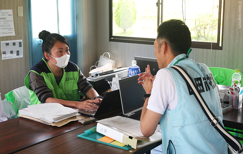 굿네이버스 일본은 미나미 아소 지역 재해자원봉사센터에서 이재민들의 피난소 생활을 지원하고 있습니다. 이재민들로부터 필요 물품 및 활동을 의뢰 받아 200여명의 봉사인력을 각 피난소로 파견해 청소, 급식 등의 사업을 진행하고 있습니다. 또한 피난소 별로 구호물품을 배분하는 등 재해자원봉사센터의 활동 전반을 관리하고 있습니다.