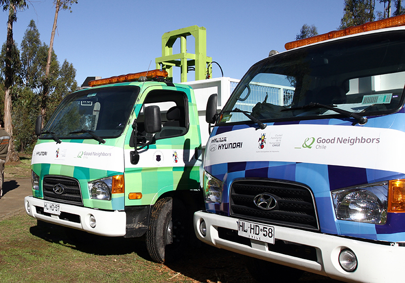 이에 우리 단체와 현대자동차는 이번 런칭 행사를 시작으로 향후 3년간 발파라이소 지역에서 환경개선 활동을 진행합니다. 플라스틱 및 폐지 압축기를 특장한 재활용 수거차량 2대를 운영해 재활용 쓰레기를 수거 및 판매하고, 이로 인해 발생한 수익을 환경교육센터 운영에 사용할 계획입니다.