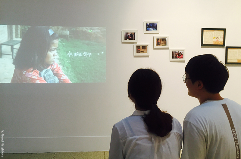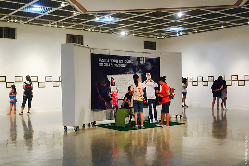 이번 전시회에는 제8회 희망편지쓰기대회에서 EBS 사장상, 굿네이버스 회장상, 인천광역시교육청 교육감상 등을 수상한 희망편지 68점이 전시됐습니다. 또한 이번 희망편지쓰기대회의 주인공인 수니타가 아이들로부터 희망편지와 응원을 전해 받고 학교에 나가게 된 모습이 사진으로 전시됐습니다.