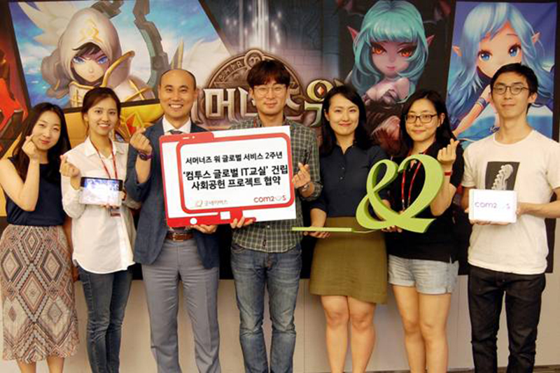 컴투스는 지난 7월 16일 <서머너즈 워: 천공의 아레나> 글로벌 서비스 런칭 2주년을 기념해 IT 교실 설립 기금 3천 만원을 전달했으며, 이를 통해 교실 리모델링, 인터넷 설치, 기자재 및 학습 물품을 지원했습니다.