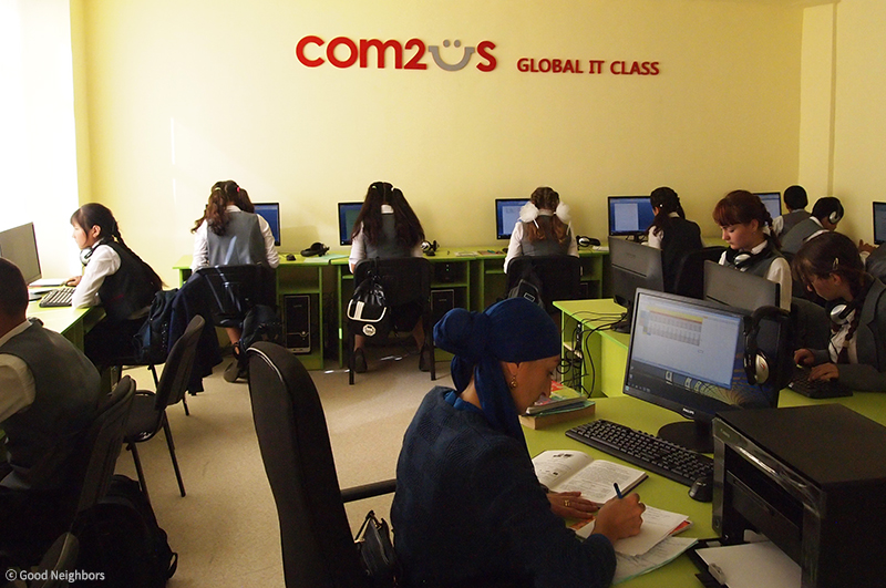 ‘컴투스 글로벌 IT 교실’은 지난 8월부터 우리 단체와 모바일 게임 기업 컴투스(대표 송병준)가 함께 건립한 교육시설로, 통신시설이 낙후돼 인터넷 접근성이 떨어지는 키르기즈공화국의 IT교육 환경을 개선하고자 설립됐습니다.