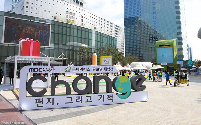 우리 단체는 27일부터 30일까지 나흘간 상암문화광장(MBC)에서 ‘굿네이버스 글로벌 체험전 Change’를 진행합니다.