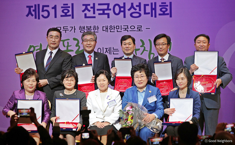 우리 단체 양진옥 회장은 지난 27일 (사)한국여성단체협의회(회장 최금숙, 이하 ‘여협’)가 주최한 제51회 전국여성대회에서 여성의 권익 신장과 지위 향상에 기여한 공로를 인정받아 ‘2016 여성 1호상’을 수상했습니다.