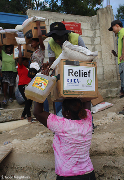 긴급구호 물품 배분을 위해 우리 단체는 피해지역, 피해현황, 필요물품 확인을 위한 현장조사를 실시하고, 현지 정부 및 유엔인도주의업무조정국(UNOCHA), 한국국제협력단(KOICA) 등과의 긴밀한 협업을 통해 긴급구호 활동 방안을 논의하기도 했습니다.