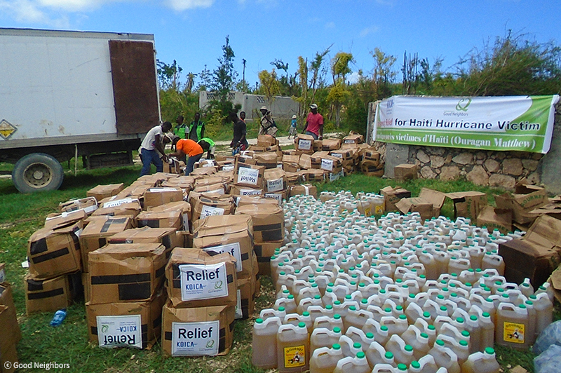 이에 우리 단체는 허리케인 매슈로 인해 피해를 입은 아이티에 총 10만 불(한화 1억2천여만 원) 규모의 긴급구호를 실시했습니다.