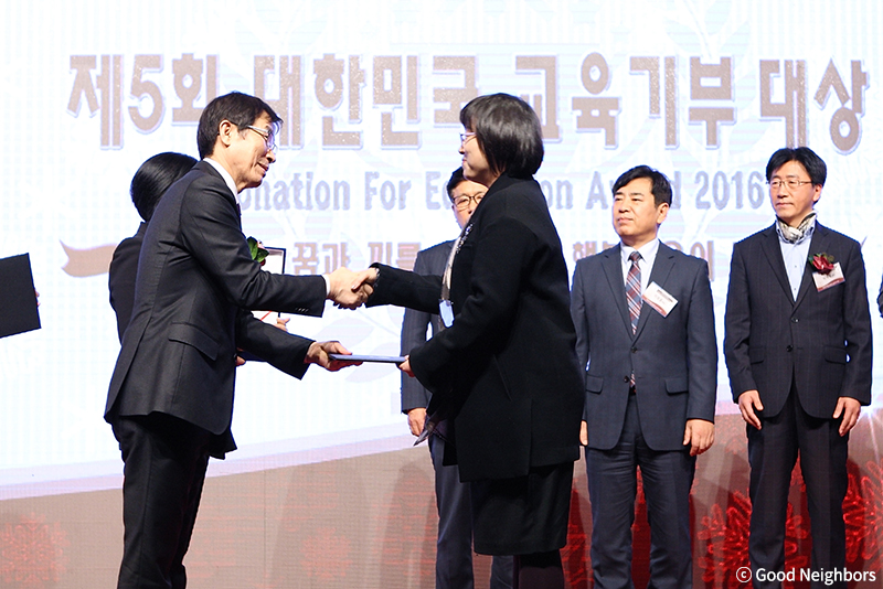 수상을 위해 참석한 우리 단체 김정미 아동권리사업본부장은 “앞으로도 굿네이버스는 아이들의 권리를 보호하고 아이들이 건강한 세계시민으로 성장 할 수 있도록 돕는 데 최선을 다하겠다”라고 수상소감을 전했습니다.