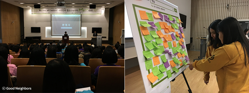 캠프에 참가한 학생들은 연세대학교 김형철 교수의 ‘글로벌 시대에 청소년에게 요구되는 리더십’, 우리 단체 전제향 나눔대사의 ‘지구촌 불평등 현장과 우리의 역할’ 강의를 들으며 불평등의 개념과 종류를 이해하고 심각성을 인지했습니다. 이후 토론, 게임, 연극 등 다양한 그룹활동을 통해 불평등의 원인을 모색하고 해결방안을 도출하는 시간을 가졌습니다.