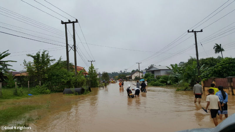 비엔티엔 지역에 2016년 11월 8일부터 이틀 간 이어진 폭우로 비엔티엔 수도에서 약 180km 떨어진 곳에 위치한 믄 지역의 전체 22개 마을 중 20개 마을에 가축유실, 농작물 피해 등의 재산 피해 및 댐, 학교, 도로 파손 등의 인프라 피해가 발생했습니다.