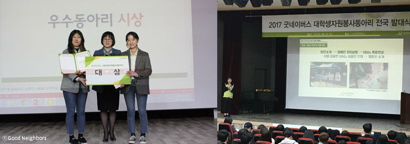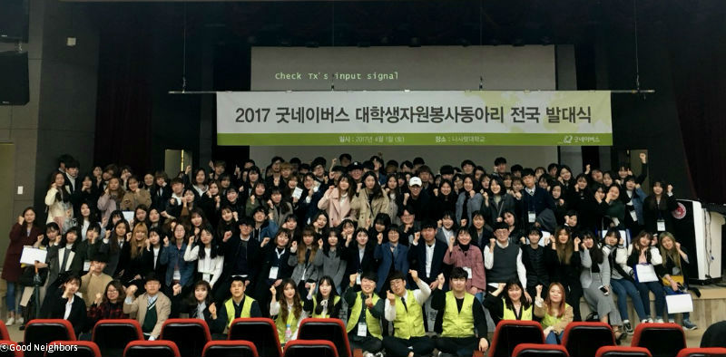 우리 단체는 지난 1일 나사렛대학교 중강당에서 2017년 굿네이버스 대학생자원봉사동아리 전국 발대식을 진행하였습니다.