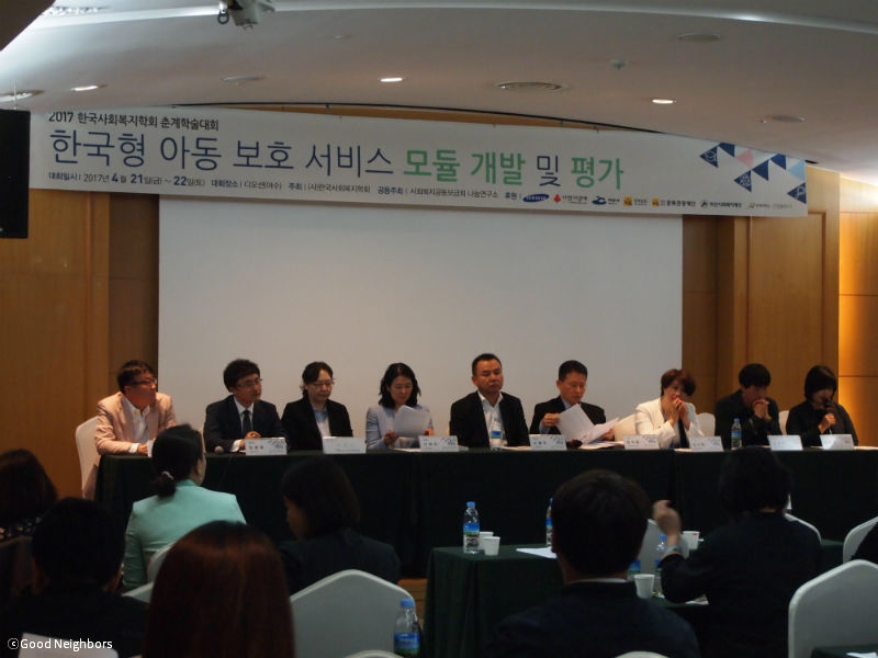 지난 21일, 우리 단체는 여주 디오션리조트에서 진행된 ‘2017년 한국사회복지학회 춘계 학술대회’에서 학대피해아동 사례관리 서비스 개선을 위한 ‘굿네이버스 아동보호 통합지원 전문서비스’ 연구 결과를 발표했습니다.