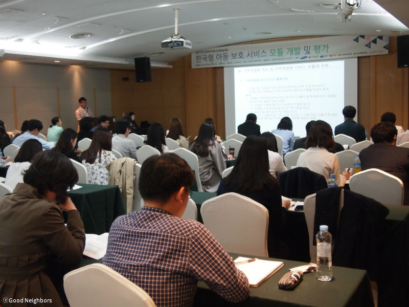 이번 발표는 우리 단체와 함께 연구개발에 참여한 이봉주 서울대 사회복지학과 교수 외 3명의 연구 교수들 및 시범사업에 참여하였던 우리 단체의 전남중부권아동보호전문기관 임광묵 관장이 발표자로 나섰습니다. 이들은 이 자리에서 ‘굿네이버스 아동보호 통합지원 전문서비스’의 필요성과 서비스 소개 및 효과성을 전달했습니다.