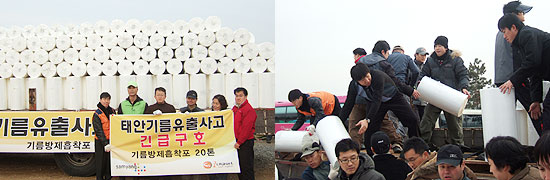 우리단체는 지난 12월 21일(금)과 22일(토) 양일간 주식회사 삼양사로부터 기름방제작업용 흡착포 20톤을 지원받아 기름유출피해로 인해 방제작업이 진행 중인 충남 태안지역 복구현장에 전달하였습니다.