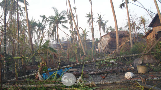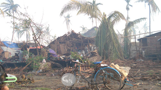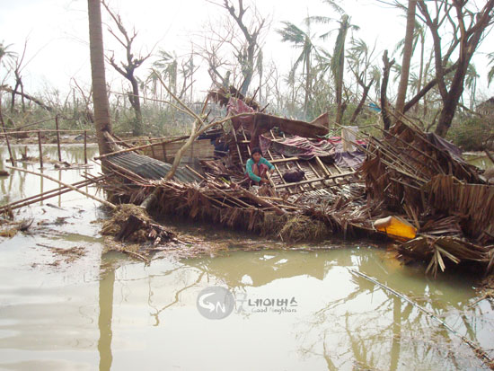'주인은 온데 간데 없고, 쓰러진 집과 나무들만 무성' 대개 나무나 대나무로 지어진 미얀마의 농촌주택들은 사이클론 나르기스에 의해 피해를 크게 입었다.
