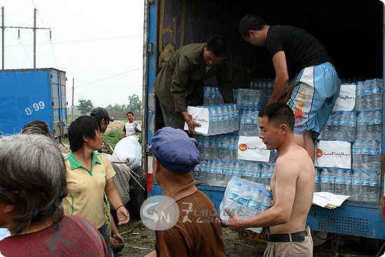 또한 우리단체는 지난 25일(일)에 지역조사를 실시한 곳 중의 하나인 멘주시 광제진의 피해 이재민들을 지원하기 위해 400명이 단기간 사용할 수 있는 물, 쌀, 기름 등의 식료품과 수건, 칫솔, 비누 등의 생활용품 등 총 18여가지 구호물품 배분을 실시하였습니다.