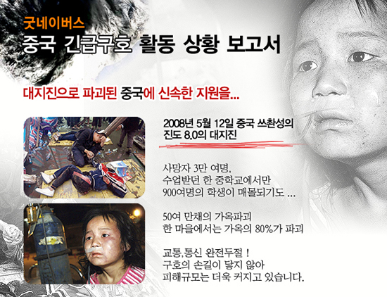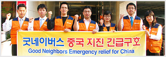 - 우리단체는 30년만의 대지진으로 초토화 된 중국에 긴급구호 활동을 전개.