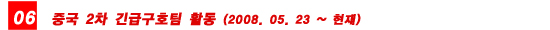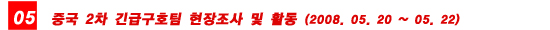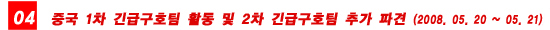 - 5월 15일(목) 중국 쓰촨성 청두에 긴급구호팀을 급파하여 현장 조사를 마침.