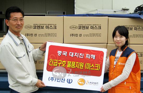 (주)인산의 관심과 지원에 깊이 감사드리며, 앞으로도 중국 대지진 피해와 미얀마 싸이클론 피해 복구를 위한 지속적인 관심과 후원 부탁드립니다.