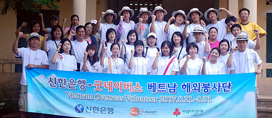 굿네이버스는 지난 8월 21일(화)부터 8월 31일(금)까지 신한은행(은행장 신상훈), 사회복지공동모금회의 후원으로 “2007 신한은행-굿네이버스 베트남 해외자원봉사단”을 파견하였습니다.