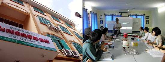 <사진 좌: KOICA지원으로 건립된 Vietnam-Korea Friendship Clinic>
