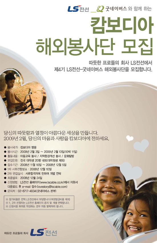 우리단체와 LS전선이 함께하는 대학생 캄보디아 해외봉사단을 모집합니다.