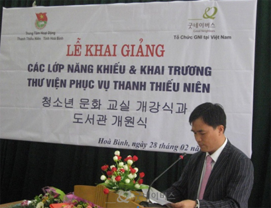 2005년부터 사업을 시작한 굿네이버스 베트남 지부는 하노이 인근 6개 성 중 가장 낙후된 지역인 화빙성을 중심으로 개발 사업을 추진 중에 있습니다. 화빙성 내 자모, 로선, 조난, 탕랑 4개 지역의 아동교육 지원사업을 통한 장학금과 학교 기자재 지원, 유치원 급식지원 및 예체능 교육을 실시하고 있으며, 청소년 문화교실을 통해 소외된 청소년들에게 양질의 교육 기회를 제공하고 있습니다. 또한 가난한 농가를 대상으로 암소은행사업을 통한 암소지원과 특용작물 재배 교육 실시로 농업 지역의 소득 창출에 힘쓰고 있고, 우물과 화장실 개발을 통해 주민의 삶의 질 향상에 주력하고 있습니다.
